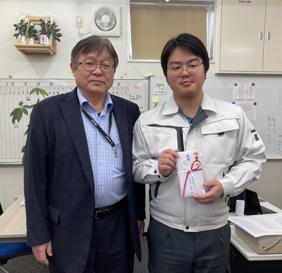 2024年1月1日に起きました能登半島地震による北陸自動車道の緊急災害復旧に人力した社員に慰労金を贈りました。