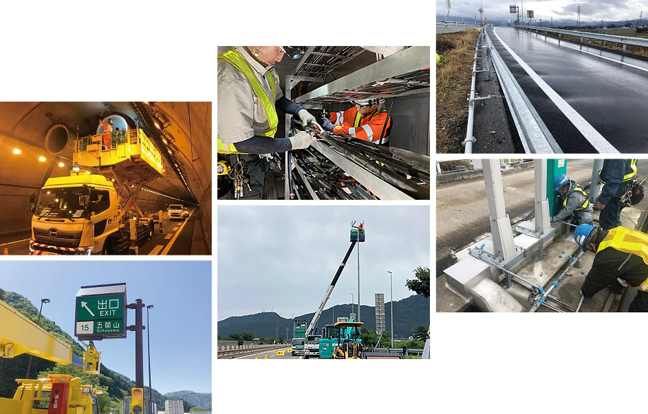 『高速道路』は、生活および社会に必要不可欠な道路であり、日本列島を縦断している大切なネットワークです。 私たちは、多くのお客様が安心してご利用いただけるよう、『高速道路』を常に良好な状態に保つことを目的として電気・機械・水道・通信・ETC・建築設備における施設の点検・保全業務を実施しています。